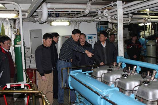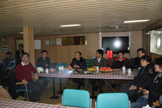 所领导首先听取了“北斗”号调查船2011年的工作总结以及船舶运行状况汇报,实地查看了船舶驾驶室和机舱等重点部位。针对“北斗”号的工作现状和存在的问题,所长王清印发表了重要讲话,他代表所领导班子对“北斗”号调查船全体船务人员为黄海所科技事业做出的贡献表示感谢,对大家一年来保持船舶安全运行,圆满完成各项任务,表示诚挚的问候。他说,“北斗”号多年来为我国的海洋科技事业做出了重要贡献,曾被农业部授予的“功勋号调查船”,“北斗”号取得的成绩离不开每一位船务人员的辛勤劳动,也得到了所内外的普遍好评。王清印所长对“北斗”号今后的工作提出了希望和要求,勉励大家继续发扬“北斗”号的光荣传统和团队精神,团结一致,密切协作,争取完成更多的调查任务,为我国的海洋科学事业再立新功;并重点强调了船舶的安全,要求大家一定要强化管理、把船舶维护保养好,确保船舶安全运行。各位所领导也对“北斗”号各位船务工作者提出了要求和希望,共同祝愿“北斗”号调查船为我国的海洋科技事业做出更大的成绩。