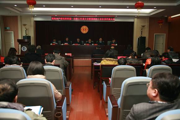 1月24日下午,黄海所隆重召开第三届职工代表大会第三次全体会议暨工会代表会议,所领导王清印、金显仕、李健、殷邦忠、赵宪勇出席了会议,61位代表参加了大会?;嵋橛晒せ岣敝飨锝萃局鞒?。