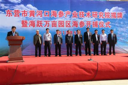 5月11日,东营市黄河口海参产业研究院揭牌暨海跃万亩园区海参开捕仪式在山东海宏实业集团有限公司举行,来自东营市有关单位的领导、专家270余人出席了此次仪式。黄海水产研究所副所长金显仕、成果转化处处长王印庚等应邀出席了仪式。