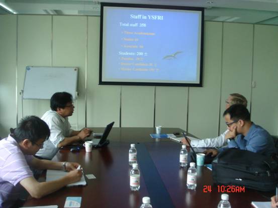 5月24日,Wallenius Water AB公司副总裁Christer Jungsand先生一行2人到黄海水产研究所参观访问。副所长金显仕、环境室主任曲克明及相关人员接待了Christer Jungsand一行,并进行了座谈。