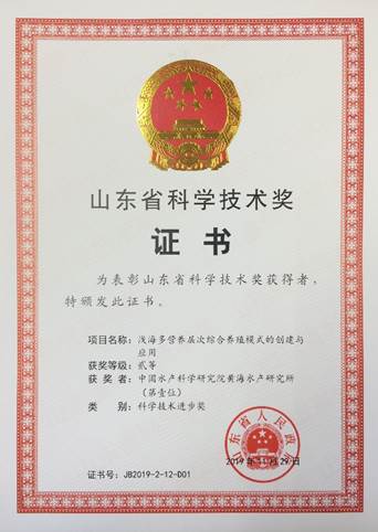 7月2日,2019年度山东省科技创新大会在济南召开,表彰为山东省科技创新事业和经济社会发展做出突出贡献的科技工作者。中国水产科学研究院黄海水产研究所蒋增杰研究员团队领衔完成的“浅海多营养层次综合养殖模式的创建与应用”成果荣获山东省科技进步二等奖。