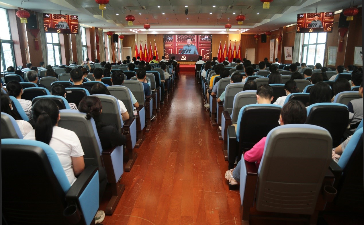 7月1日上午,中国水产科学研究院黄海水产研究所200余名党员同志佩戴党徽,在会议礼堂共同观看庆祝中国共产党成立100周年大会盛况,集中聆听和学习习近平总书记在大会上的重要讲话。
