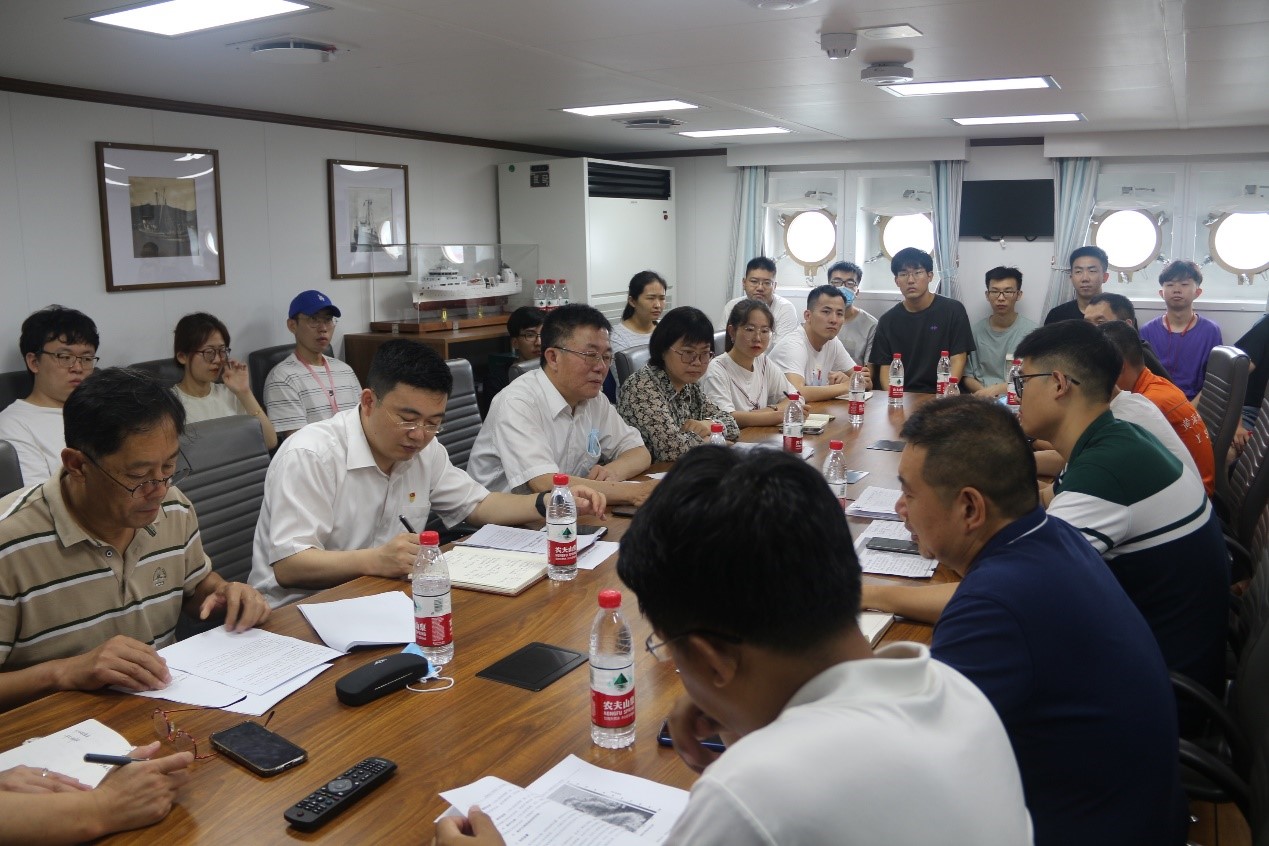 金显仕所长在听取各方汇报后,重点提出以下三方面的要求:一是要注意安全,一切行动听指挥,保证人、财、物以及数据安全;二是要注重团结协作、互相支持、相互配合,圆满完成航次调查任务;三是要保质保量获取第一手数据,为海洋科学研究提供有力的数据保障。