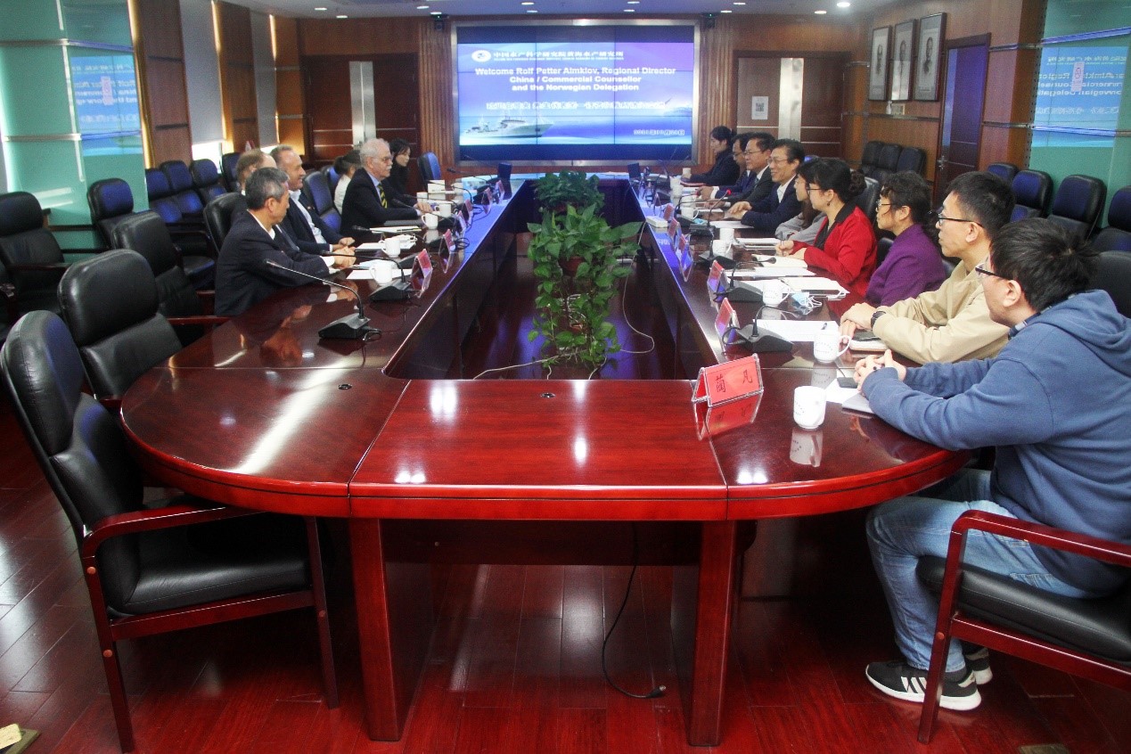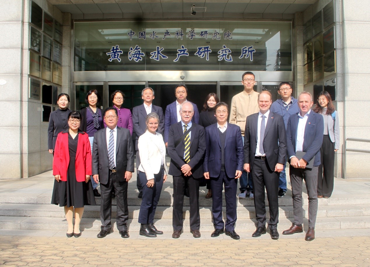 10月28日,挪威驻华大使馆商务参赞、挪威创新署(中国)负责人安若夫先生率团到中国水产科学研究院黄海水产研究所访问交流?;坪K芯克澄榧?、副所长赵宪勇,副所长辛福言,所长助理单秀娟以及相关专家接待了安若夫参赞一行,并进行了座谈。座谈由所长助理单秀娟主持。