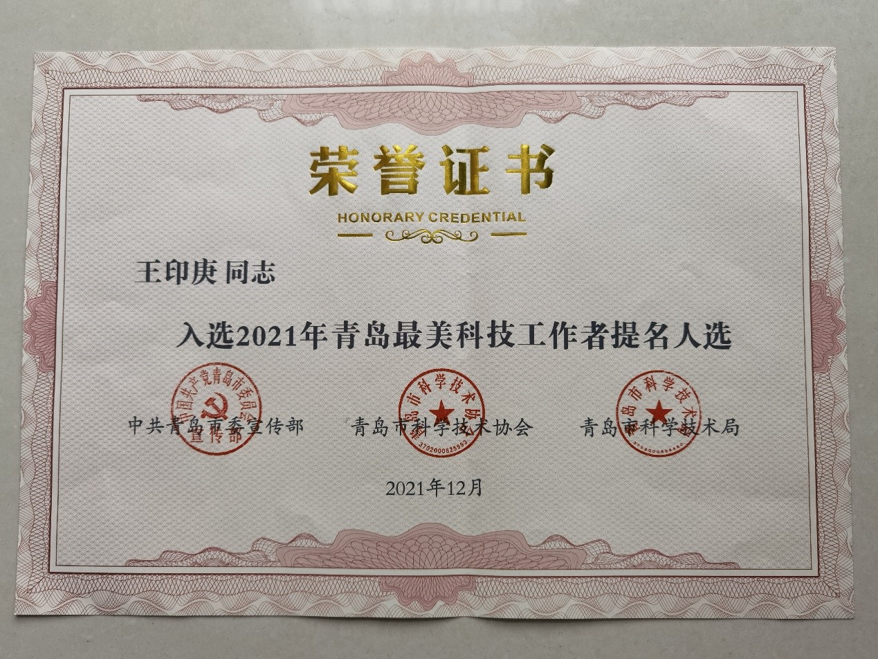 12月10日,由中共青岛市委宣传部、青岛市科学技术协会、青岛市科学技术局联合举办的2021年度《榜样的力量》-2021“青岛最美科技工作者”先进事迹发布仪式在青岛市广播电视台举行。2021年“青岛最美科技工作者”评选活动自今年年初启动以来,经过组织推荐、专家评审和社会公示等环节,遴选出10名“青岛最美科技工作者”和10名“青岛最美科技工作者”提名人选。中国水产科学研究院黄海水产研究所王印庚研究员入选2021年“青岛最美科技工作者”提名人选。