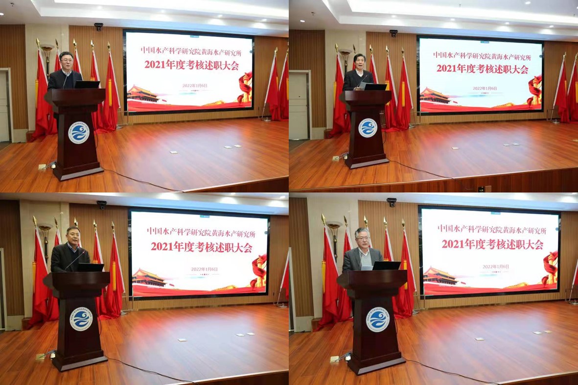 1月6日,中国水产科学研究院黄海水产研究所召开2021年度所级领导和部门正副职考核公开述职大会,所领导班子成员、各部门正副职以及全所副高以上职称人员等160余人参加了会议?;嵋橛伤斓悸至髦鞒?。