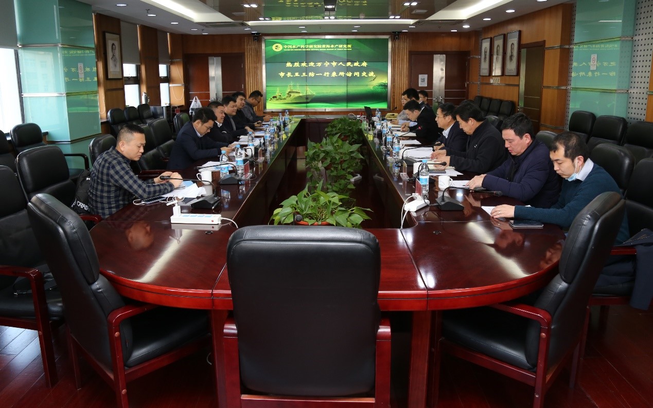金显仕所长对王三防市长到访表示欢迎,介绍了黄海水产研究所在产学研合作、人才培养、科技创新、水产种业等方面取得的成绩。他表示,根据新时代中国科技创新“四个面向”的要求,希望双方结合自身优势,深入开展产学研合作,促进科技成果转化,为海南省海洋渔业产业的发展贡献力量。