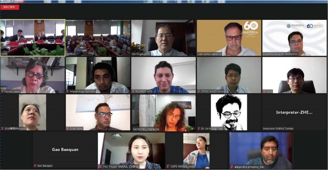 5月6日,为推动中国墨西哥海水养殖联合研究中心(以下简称“中心”)渔业国际科技合作工作,中心组织召开中国—墨西哥渔业科技国际合作第四次远程视频推进会。农业农村部国际合作司胡译匀副处长,科技部农村中心朱浩副处长,中国水产科学研究院刘英杰副院长、王佳迪副处长,中国水产科学研究院黄海水产研究所叶乃好副所长、李健研究员,墨西哥国家渔业和水产养殖研究所(National Institute of Fisheries and Aquaculture)Juan Carlos副所长等30余位代表参加了会议。