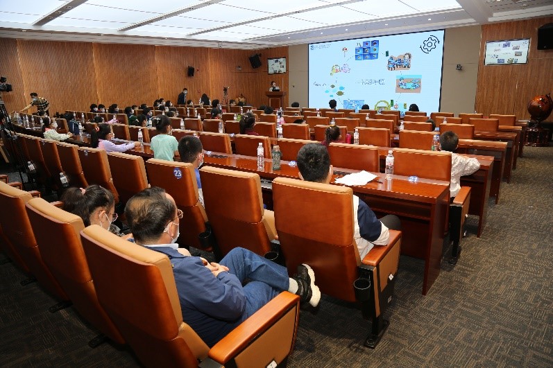 根据科技部、中央宣传部、中国科协《关于举办2022年全国科技活动周的通知》(国科发才〔2022〕69号)精神,为推动科技创新成果和科学普及活动惠及于民,5月21日上午,中国水产科学研究院黄海水产研究所在严格做好疫情防控和落实核酸检测的情况下,举办了“国家海洋渔业生物种质资源库2022青岛科技周科普活动”。本次活动以“走进海洋渔业生物 人与自然和谐共生”为主题,以线上+线下同步进行的形式开展,综合运用专家科普讲座和展厅参观、讲解等方式,结合微信等新媒体平台面向社会大众开展科普宣传,以推动民众了解丰富多彩的海洋渔业生物学及相关知识,培养大家关注海洋、热爱海洋、?;ずQ蟮囊馐?。来自青岛市科技局、青岛市科协和市南区科协的领导以及南京路小学、海信学校等学校的40余名同学参加活动?;疃皇接珊Q笥嬉瞪镒试纯庋蟹⒅行闹魅瓮蹩≈鞒?。