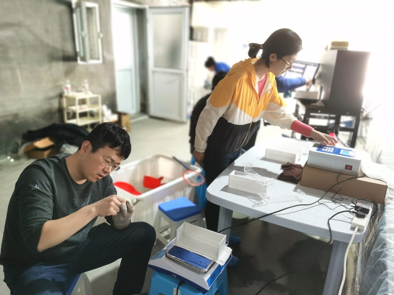 代平同志在凡纳滨对虾联合育种基地测试对虾智能化性状测量设备