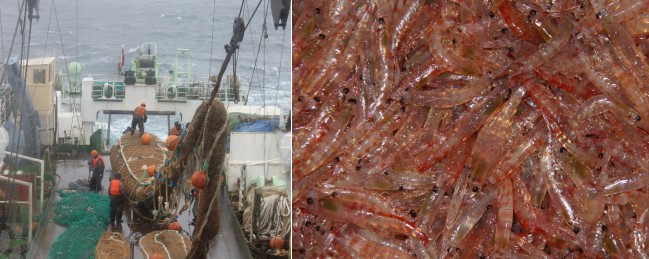 图4.磷虾渔船生产作业与渔获物