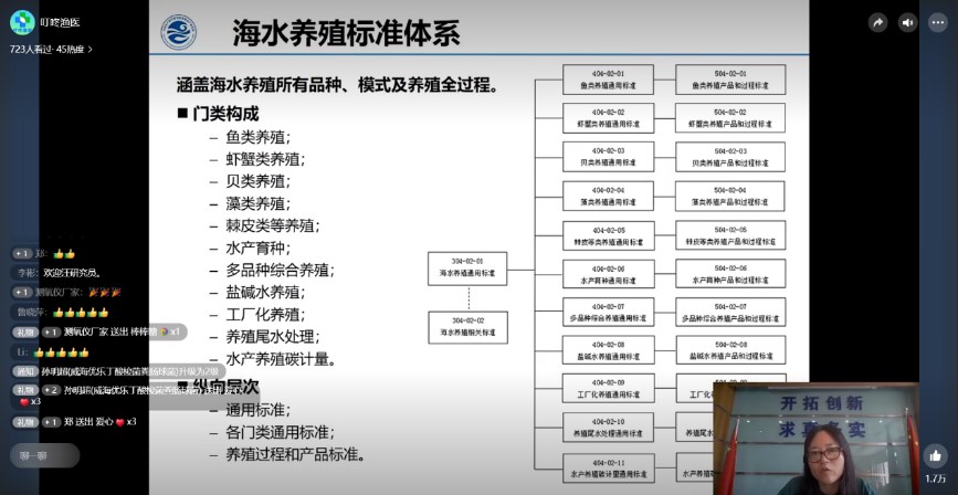 黄海水产研究所组织相关专家,进行了对虾疾病防控、海参养殖苗种繁育、水产育种技术、生态健康养殖模式、海水标准化发展历程、海水养殖标准体系、渔药开发、渔药安全使用等方面的技术培训。来自全国沿海地区养殖基层技术人员1100余人线上参加了此次活动。