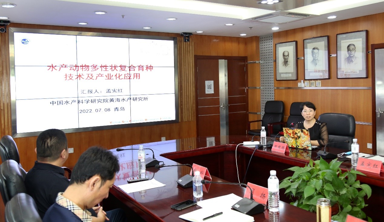孔杰副所长详细分析了南美白对虾产业发展的相关问题,希望双方共同寻求全方位的合作切入点,助力山东种业集团有限公司做大做强水产领域业务板块,携手开创合作共赢新局面。种质资源与工程育种研究室主任孟宪红作了题为《水产动物多性状复合育种技术及产业化应用》的报告,介绍了我国水产新品种概况,详细讲解了我所对虾遗传育种团队在新品种创制、技术创新和产业化应用等方面的研究进展,并就双方下一步合作领域和内容提出诸多合理化建议。