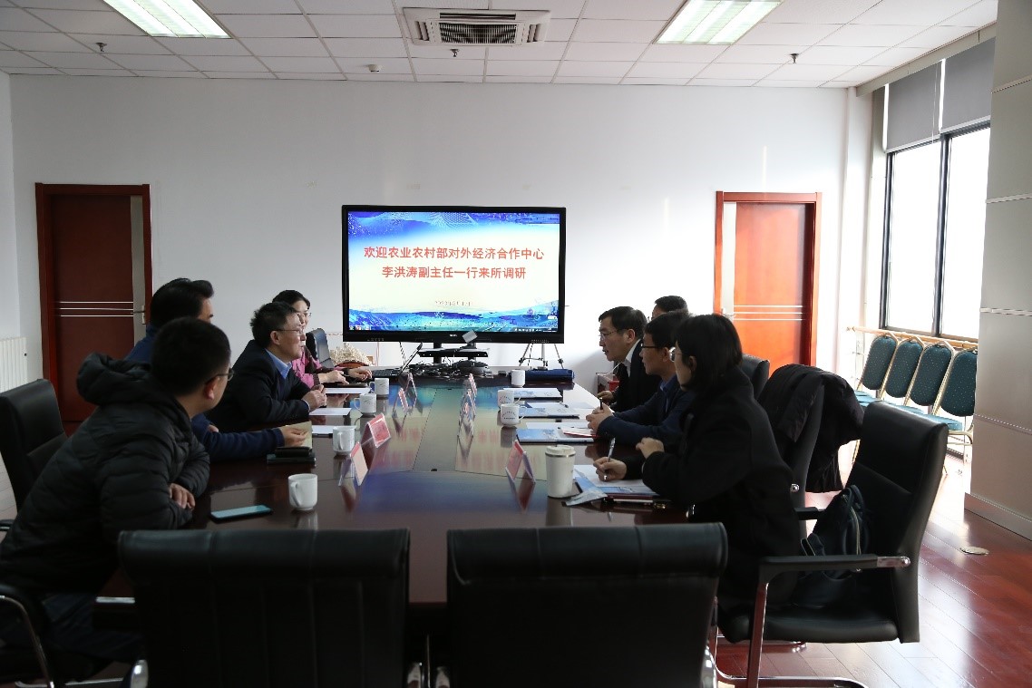 2月17日,农业农村部对外经济合作中心李洪涛副主任一行3人到中国水产科学研究院黄海水产研究所进行水产种业发展调研交流?;坪K芯克そ鹣允?、副所长孔杰以及相关职能部门负责人接待了李洪涛副主任一行,并进行了座谈。