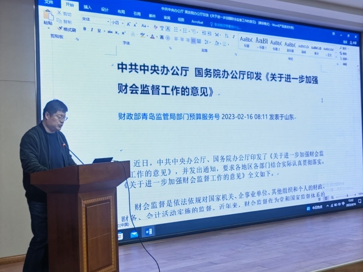4月14日,中国水产科学研究院黄海水产研究所组织“加强财会监督工作”专题学习,资产管理、监审、财务人员以及各部门科研财务助理、报销经办人等30余人参加了会议,会议由财务处于津处长主持。