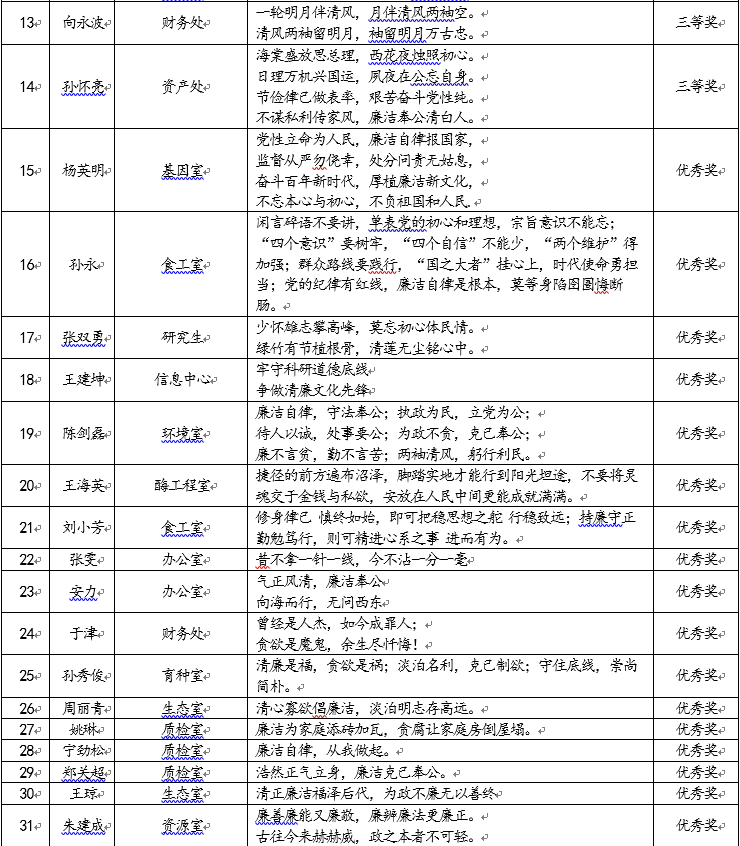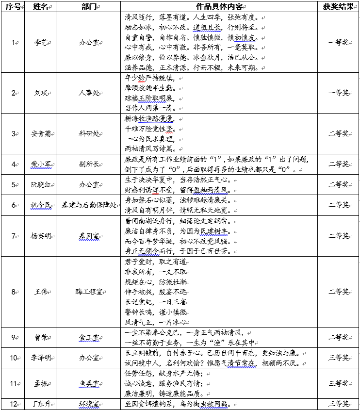 黄海水产研究所廉政诗词格言警句优秀作品名单