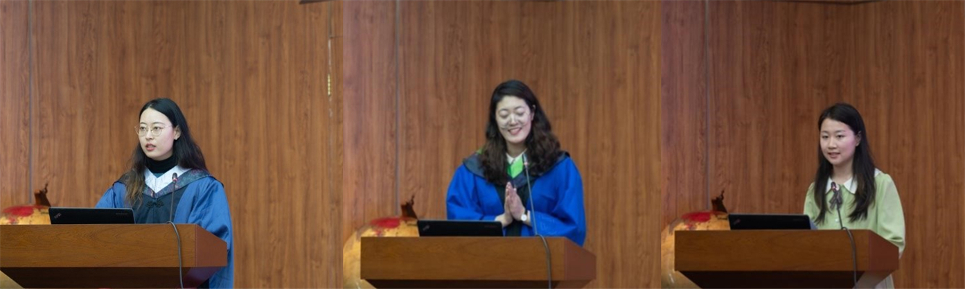 研究生会主席张贝叶、研究生党支部委员张薇、研究生新生郭晓萌发言