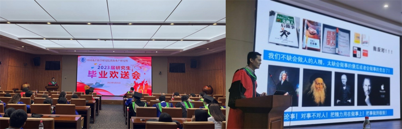 赵宪勇书记在总结发言中指出:近年来,在全所师生的不断努力下,我所研究生招生规模不断扩大,联合培养研究生质量不断提高,研究生科技创新能力持续增强,为我所研究生联合培养事业奠定了良好基础。希望大家牢记金显仕所长嘱托,踔厉奋发,笃行不怠,把握好机遇与挑战,将个人的职业追求融入国家需求当中,努力成为栋梁之才。也希望各位毕业生不仅把黄海水产研究所当作走向社会的始发站,更要把它当作温馨的家来常回家看看。