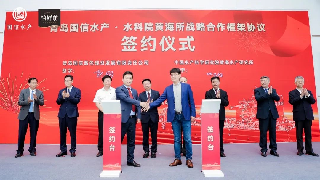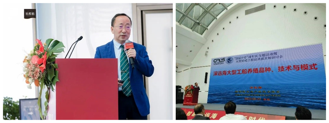 5月27日,以全球首艘10万吨级智慧渔业大型养殖工船“国信1号”下水运行周年庆为契机,大型养殖工船高质量发展专题会议在青岛顺利召开。中国水产科学研究院黄海水产研究所叶乃好副所长、王清印研究员、关长涛研究员和徐永江研究员应邀参加了本次会议。叶乃好副所长代表黄海水产研究所与国信中船(青岛)海洋科技有限公司签署了科技战略合作协议,就养殖工船适养品种与养殖技术开发进行强强联合;关长涛研究员作了题为“深远海大型工船养殖品种、技术与模式”的主旨报告,就工船养殖模式下适养品种筛选、养殖技术开发与模式构建进行了分析与展望。