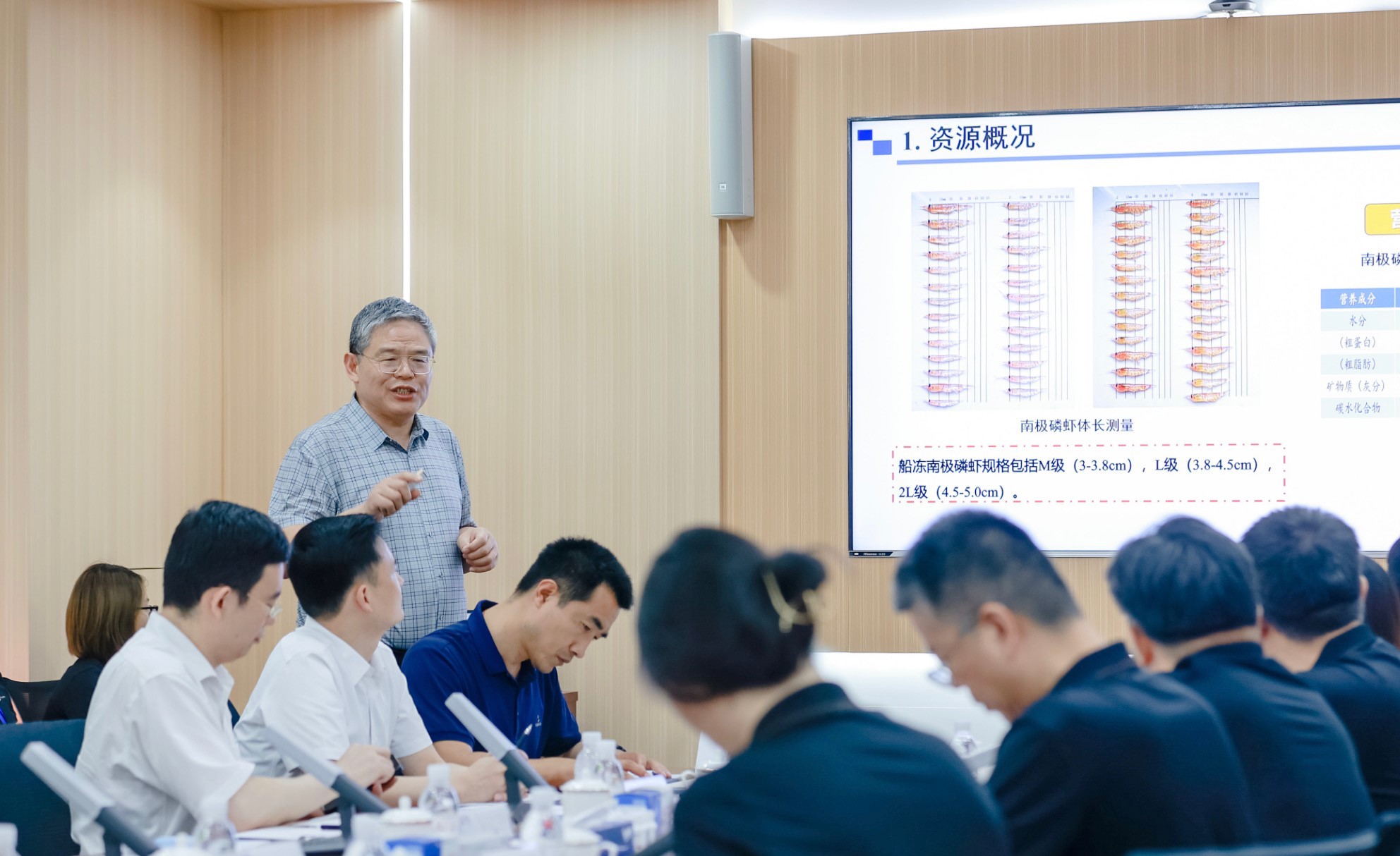 农业农村部极地渔业可持续利用重点实验室副主任冷凯良代表调研组介绍了黄海水产研究所在南极磷虾资源评估与养护管理、南极磷虾陆基高值利用与质量安全检测方法和标准等方面的研究成果。