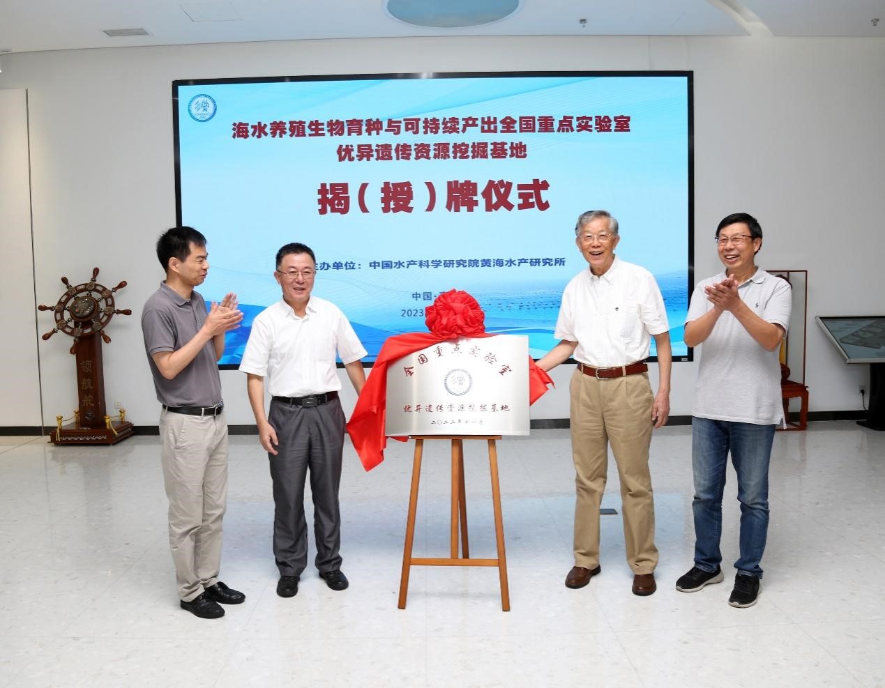 9月22日,海水养殖生物育种与可持续产出全国重点实验室优异遗传资源挖掘基地揭(授)牌仪式在国家海洋渔业生物种质资源库(以下简称“资源库”)成功举办。全国重点实验室首席科学家、中国工程院院士唐启升,中国水产科学研究院黄海水产研究所所长金显仕为应用牵引基地揭(授)牌,副所长荣小军、全国重点实验室研究方向学术带头人、资源库科研人员及相关职能部门负责人等近30人参加仪式。仪式由黄海水产研究所副所长、全国重点实验室副主任叶乃好主持。