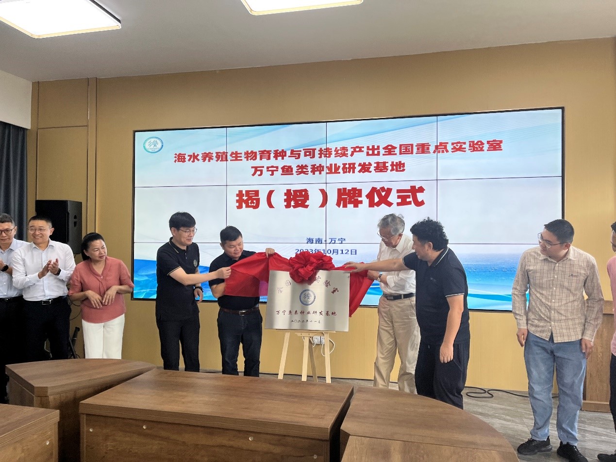 10月12日,海水养殖生物育种与可持续产出全国重点实验室万宁鱼类种业研发基地揭(授)牌仪式在万宁林兰水产养殖有限公司成功举办。全国重点实验室首席科学家、中国工程院院士唐启升,中国水产科学研究院黄海水产研究所副所长叶乃好,万宁市政府党组成员、副市长郑忠发及万宁市农业农村局干部邓佳林、海洋渔业协会会长叶慧强等有关部门负责人参加活动。