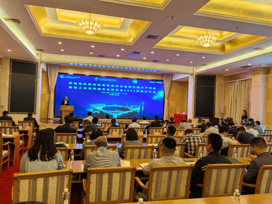 10月10日至11日,由中国水产学会和中国水产科学研究院主办,中国水产学会鱼类工业化养殖专业委员会、烟台中集蓝海洋科技有限公司、中国水产科学研究院黄海水产研究所共同承办的深远海养殖高质量发展研讨会暨中国水产学会鱼类工业化养殖专业委员会2023年学术年会在山东烟台召开。来自全国深远海养殖和鱼类工业化养殖相关的高校和科研单位专家学者、企业代表等150余人参会。大会开幕式由中国水产科学研究院黄海水产研究所副所长荣小军主持。