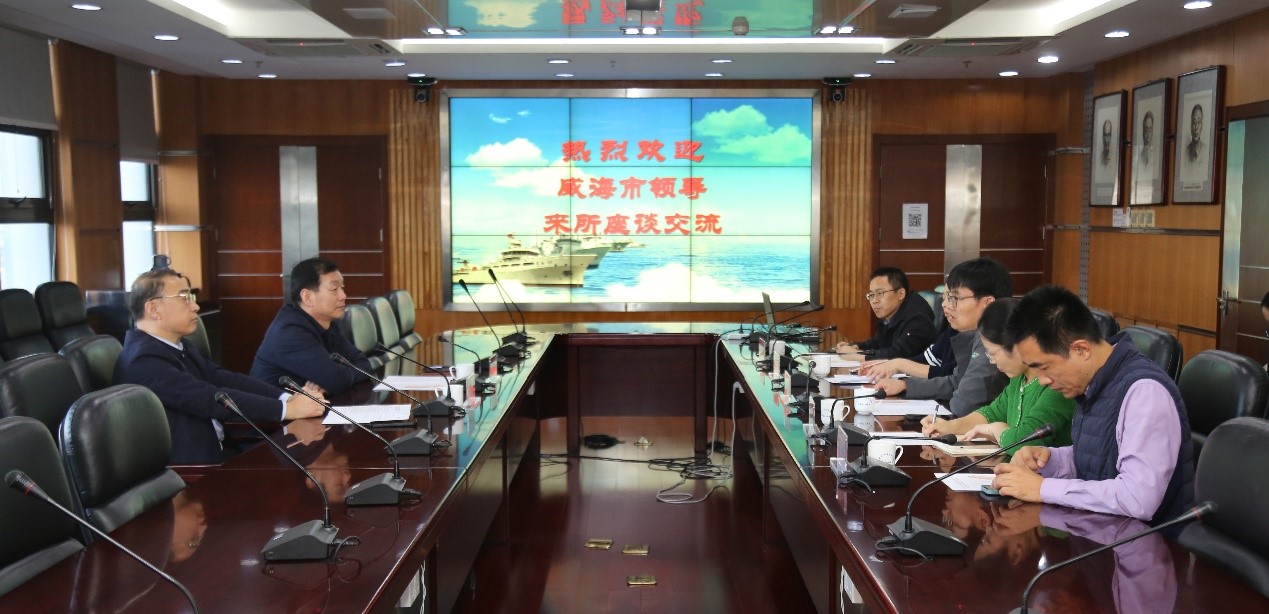 11月16日,威海市副市长张宏璞、海洋发展局局长陈丕松到中国水产科学研究院黄海水产研究所调研?;坪K芯克彼ひ赌撕眉跋喙夭棵鸥涸鹑?、专家等接待了张宏璞副市长一行,并进行了座谈。