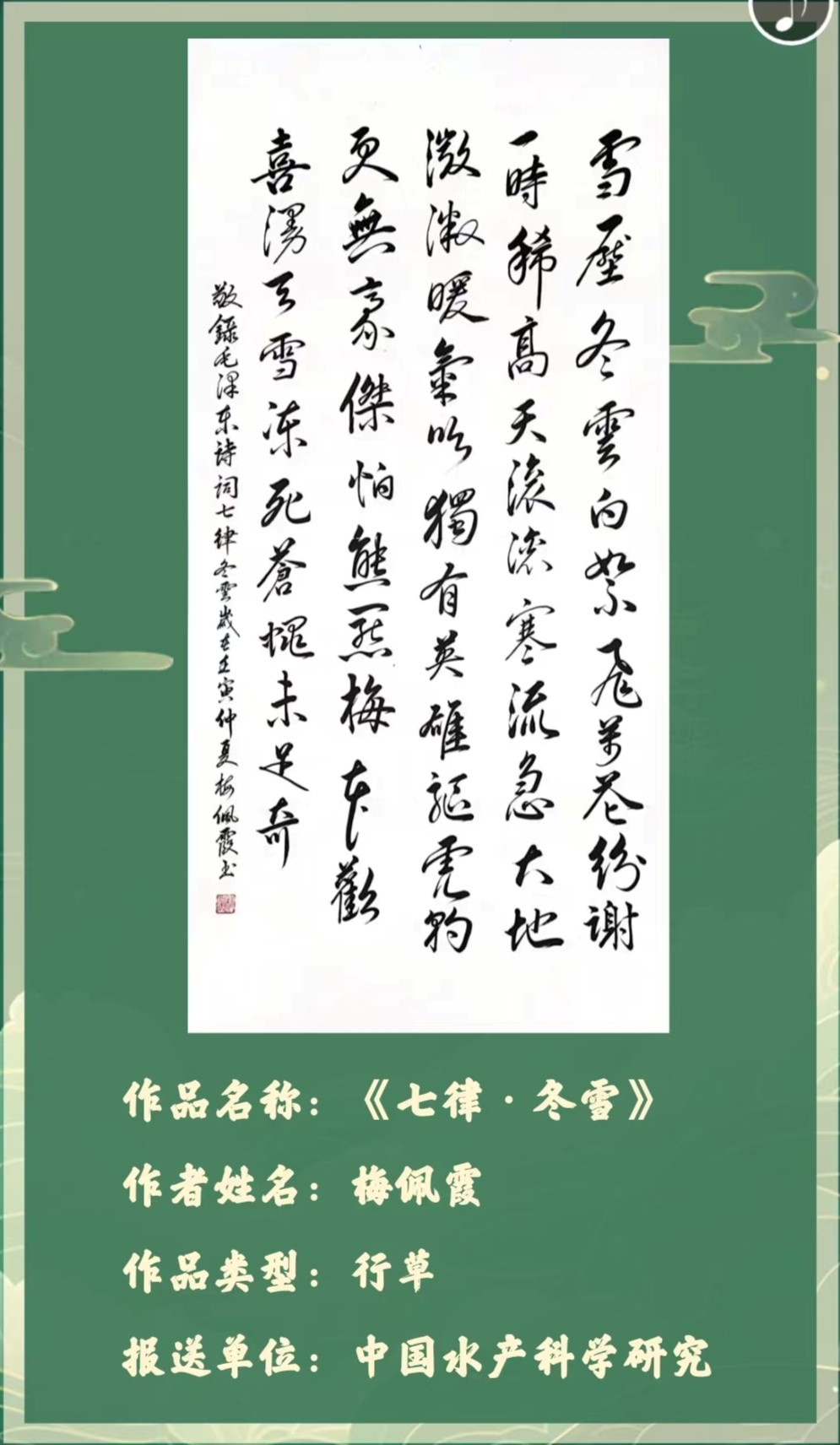 此次提交的作品通过以笔抒情、以墨释怀,充分展示了黄海水产研究所离退休职工厚重的文化底蕴和艺术积淀,体现了新时代老同志良好的精神风貌,呈现了我所和谐向上的创新文化氛围。