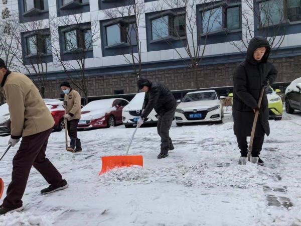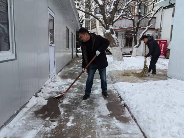 2月5日凌晨,青岛市突降大雪。为了确保园区车辆及人员安全通行,按照应急预案,基建与后勤保障处组织职工、门卫、保洁人员对园区大门口、路面、坡道、台阶等处积雪进行清理,未发生车辆事故及人员摔伤情况。