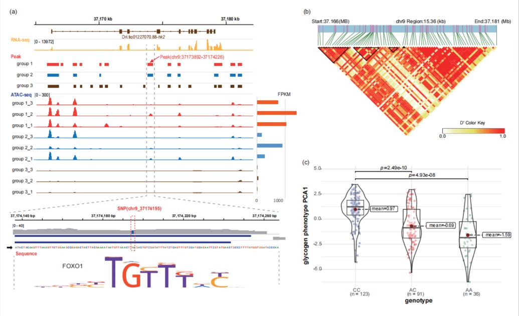黄海水产研究所海水贝类种质创制与利用创新团队在构建近江牡蛎基因组精细图谱的基础上,联合全基因组关联分析(GWAS)、转录组测序(RNA-seq)分析和染色质可及性测序(ATAC-seq)分析等多种技术方法,筛查定位到63个与糖原代谢相关的候选基因;转录组与代谢组联合分析查明高糖原组性腺组织中糖原分解、糖酵解和三羧酸循环(TCA)过程高度活跃,而与糖异生相关基因PEPCK和FBP1在低糖原组高表达;原位杂交、qRT-PCR技术明确了GS、GS3β基因在近江牡蛎外套膜、鳃、闭壳肌、肝胰腺、唇瓣、性腺等组织的时空表达规律,并通过RNA干扰等技术证明了近江牡蛎闭壳肌和肝胰腺中GS3β基因对GS表达的调控作用。以上研究为进一步解析近江牡蛎糖原代谢机制奠定了基础,同时为培育高品质牡蛎新品种提供了科学依据和技术支撑。相关成果发表在国际知名期刊Zoological Research和Fishes。