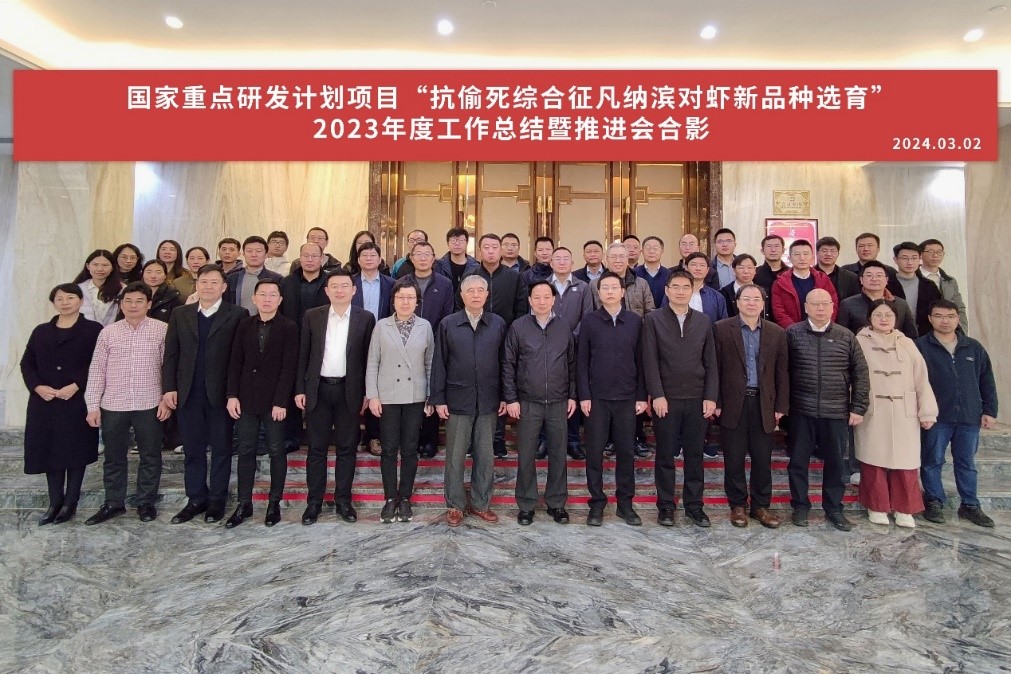 3月2日,由中国水产科学研究院黄海水产研究所主持的国家重点研发计划“海洋农业与淡水渔业科技创新”专项项目“抗偷死综合征凡纳滨对虾新品种选育”2023年度项目工作总结暨推进会在广东省湛江市召开。农业农村部科技发展中心徐长春副处长、张魁项目专员,广东恒兴饲料实业股份有限公司陈丹董事长,黄海水产研究所荣小军副所长、科研处刘志鸿处长(线上)以及项目、课题负责人、项目骨干等50余人参加了会议。