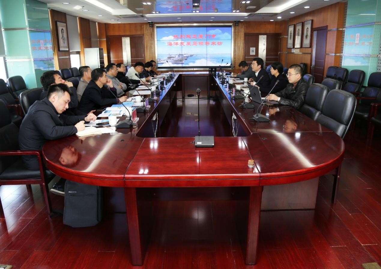 3月20日,厦门市海洋发展局党组书记、局长曾东生,厦门大学海洋与地球学院教授柯才焕,厦门市海洋与渔业研究所技术示范室主任陈建春及多家企业负责人到中国水产科学研究院黄海水产研究所调研交流,黄海水产研究所副所长荣小军及相关专家接待了曾东生局长一行,并进行了座谈。