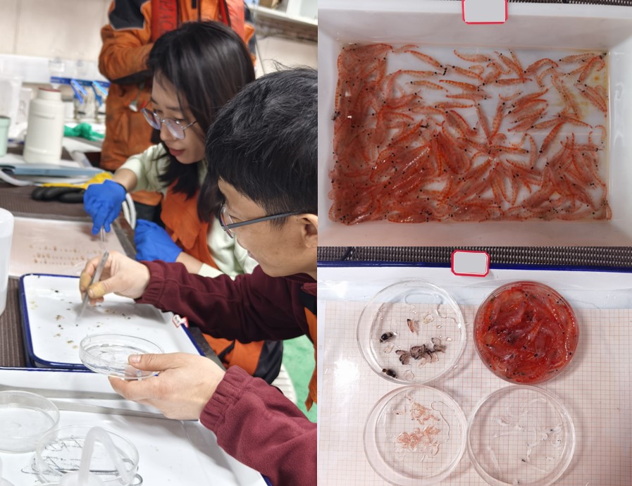 “雪龙”号艉甲板实验室南极磷虾样品生物学测量