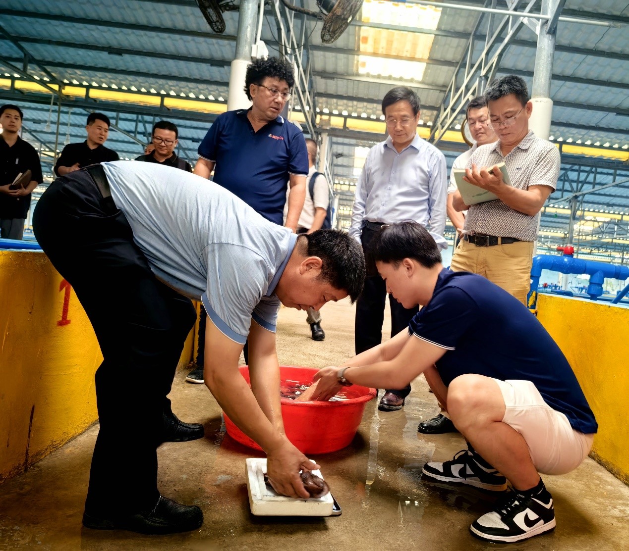 与会领导、专家和嘉宾现场考察红瓜子斑养殖情况