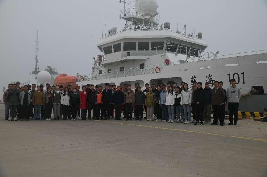 4月12日上午,中国水产科学研究院黄海水产研究所“蓝海101”号调查船起航执行国家自然科学基金委渤黄海春季共享航次(航次编号:NORC2024-01),黄海水产研究所、天津大学、中国科学院海洋研究所、山东大学、中国海洋大学、南京信息工程大学、南方海洋科学与工程广东省实验室(珠海)、华东师范大学、自然资源部第一海洋研究所、烟台大学、中国科学院烟台海岸带研究所、南京工业大学等12家单位的33名科研人员搭载了该航次?;坪K芯克彼?、项目负责人叶乃好及相关人员前往码头送行。