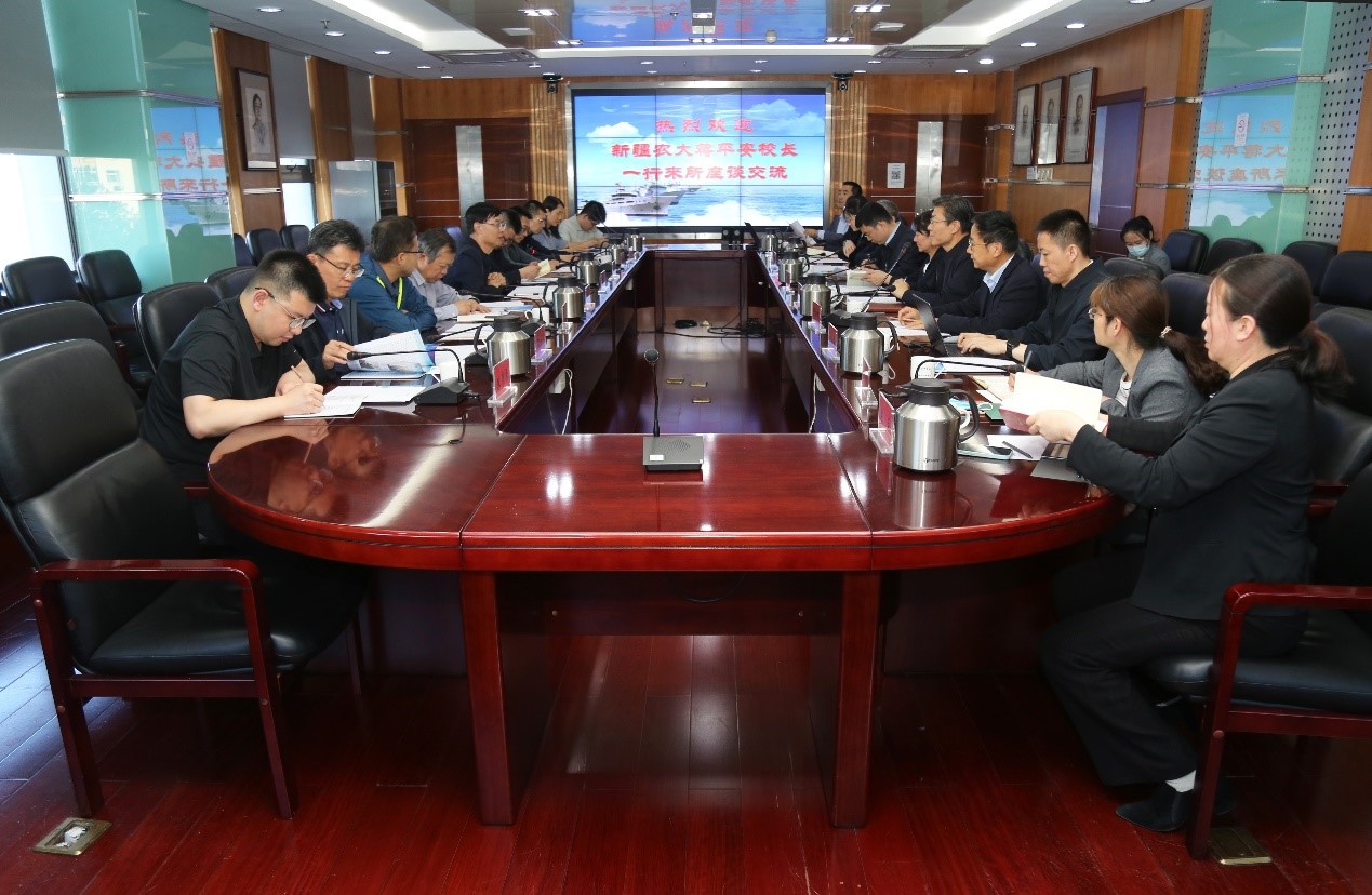 蒋平安校长高度评价了黄海所在渔业领域取得的丰硕成果及对产业发展做出的重要贡献,感谢黄海所对新疆农业大学水产领域研究、学科发展等方面给予的指导和帮助,并从校史沿革、学科建设、人才培养等各方面介绍了新疆农业大学的资源和优势,表达了在更深领域、更高层次谋求合作的愿望,希望未来双方创新合作机制,在联合申报重大科研项目等方面形成更多双赢合作。