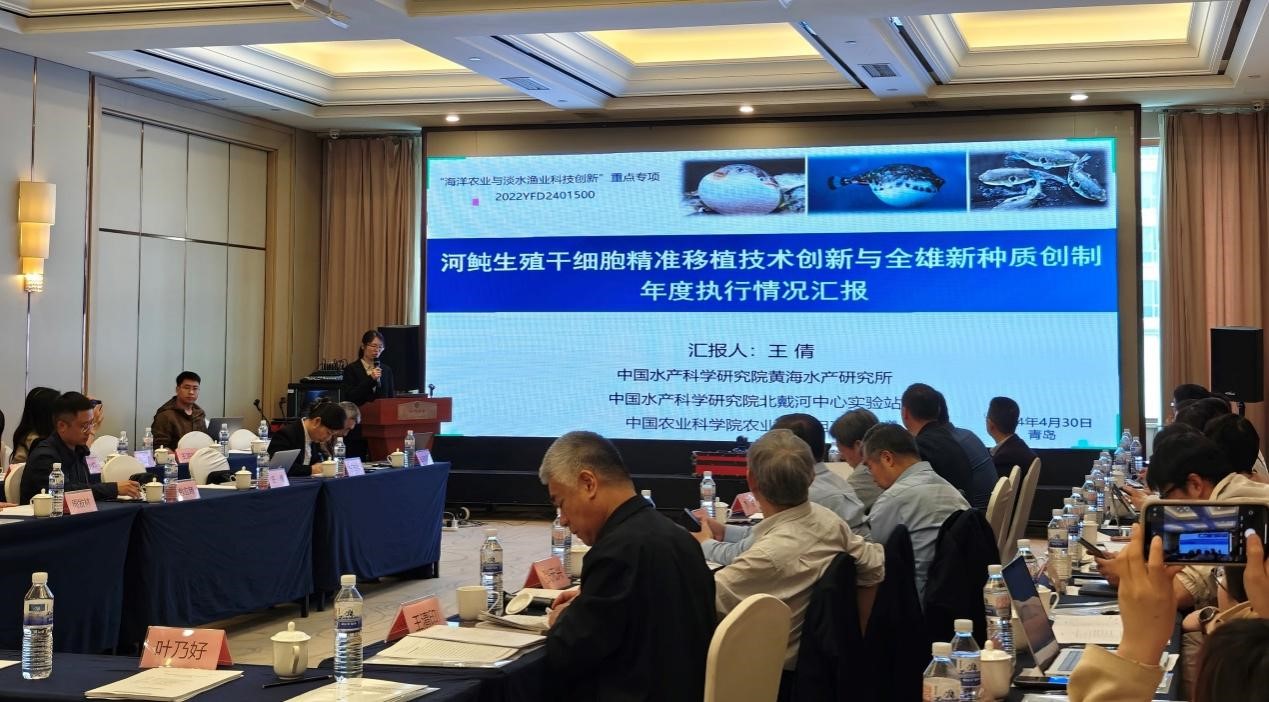 4月30日,中国水产科学研究院黄海水产研究所承担的国家重点研发计划“海洋农业与淡水渔业科技创新”重点专项“河鲀生殖干细胞精准移植技术创新与全雄新种质创制”项目2023年度总结推进会在青岛召开。中国工程院包振民院士、陈松林院士等项目咨询专家,农业农村部科技发展中心熊炜处长、张魁项目专员,项目牵头单位有关领导以及项目组成员参加了此次会议。