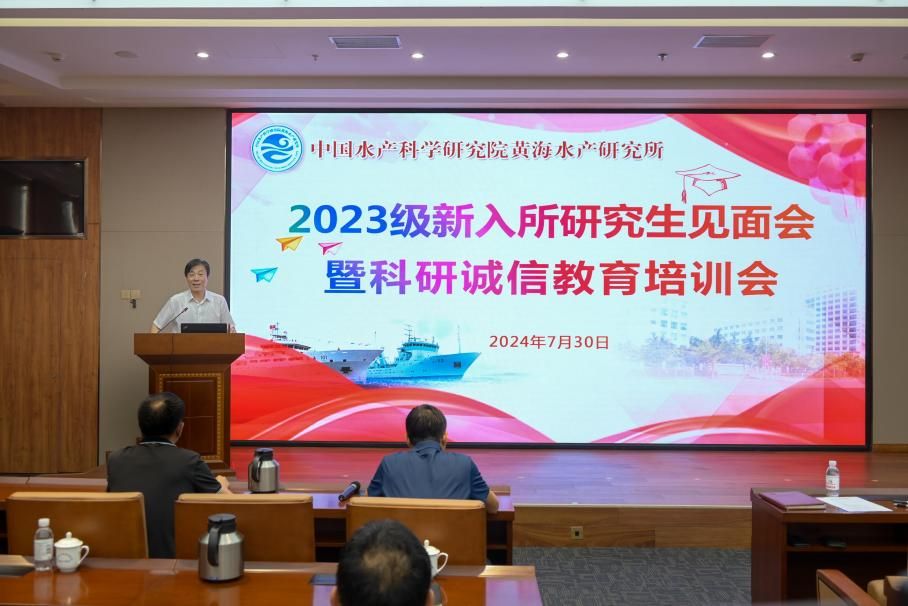 7月30日,中国水产科学研究院黄海水产研究所召开2023级研究生入所见面会暨科研诚信教育培训会,黄海所党委书记赵宪勇、副所长邵长伟、中国水产科学研究院人才处副处长赵鹏飞及王琦博士、黄海所相关部门负责人、研究生导师代表、新入所2023级研究生以及中国水产科学研究院2024年优秀大学生暑期夏令营营员等130余人参加了本次活动?;疃裳芯可旃抑魅沃苊湘鞒帧?/p>