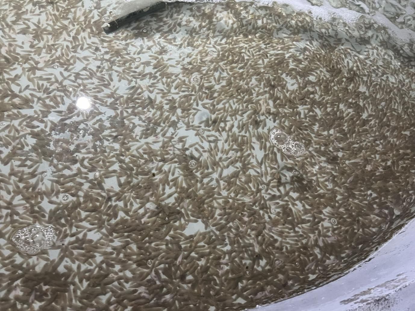 专家组听取了项目负责人有关情况汇报,查看了育苗生产数据资料,并进行现场查看和取样测量。结果显示,陈松林院士团队2024年繁育“鳎优1号”新品种苗种共计1080余万尾,其中春节(4-6月)批次530余万尾,秋季(7-9月)批次550余万尾,抽查的秋季批次鱼苗30尾,平均全长为6.5cm。专家组认为,“鳎优1号”新品种规?;庇〉昧嗽て谛Ч?,一致同意通过现场验收。