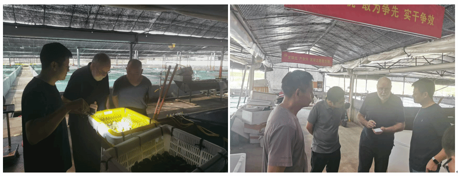 交流会后,John Humphreys教授一行赴福建省中灵农业发展有限公司、云霄浩远水产公司和红岛蛤仔养殖场,实地考察了菲律宾蛤仔的人工育苗车间、养殖池塘和养殖海域等,深入了解了我国菲律宾蛤仔的催产、苗种培育、养殖过程和发展现状,并讨论了中英两国在养殖模式和管理实践上的差异,探讨了环境因素对菲律宾蛤仔生长和存活的影响,为我国菲律宾蛤仔养殖产业的健康可持续发展提供了重要参考。