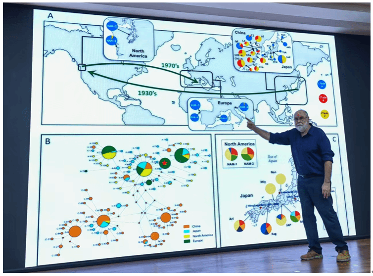 John Humphreys教授做了题为“The Manila Clam, Ruditapes philippinarum: Worldwide and in Britain”的学术报告,主要介绍了世界各地菲律宾蛤仔的地理分布、育种和养殖现状,以及蛤仔种质资源受到环境因素和鸟类捕食等方面影响的最新研究进展,引起了参会人员的广泛兴趣。John Humphreys教授还与参会人员就菲律宾蛤仔世界分布、壳色选育等问题展开了深入探讨和交流,现场气氛热烈?;岷?,John Humphreys教授还参观了黄海所种质资源与工程育种研究室。