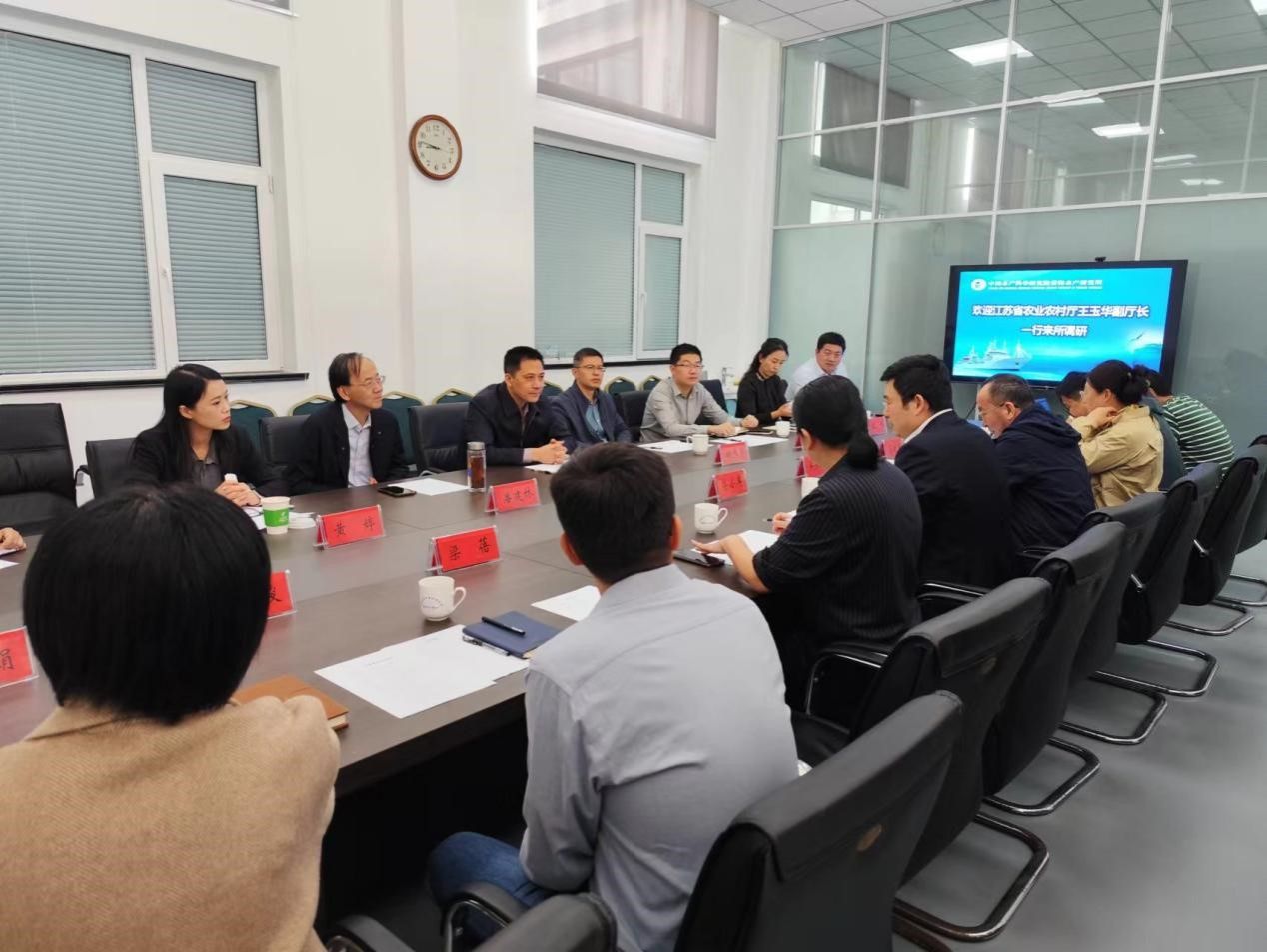 10月11日,江苏省农业农村厅副厅长王玉华、江苏省渔业技术推广中心副主任黄婷、江苏省淡水水产研究所所长潘建林等一行8人到中国水产科学研究院黄海水产研究所调研交流,黄海所副所长荣小军、国家海水鱼产业技术体系首席科学家关长涛、科研处处长刘志鸿及黄海所种质资源保护、育种方向相关专家参加了座谈。