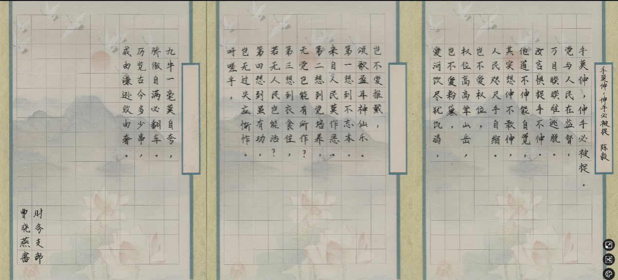 本次活动得到了黄海所广大书画爱好者的热烈响应和积极参与,创作出多幅优秀书画作品,以独特的艺术视角和表现形式,诠释了廉洁的内涵和意义,表达了对党、对祖国的热爱以及永远跟党走的坚定决心。