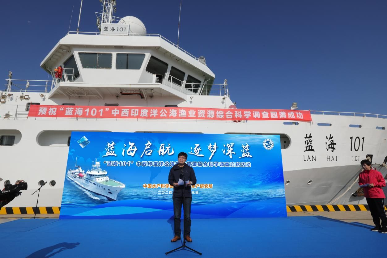 10月23日,中国水产科学研究院黄海水产研究所“蓝海101”号调查船起航执行“2024年度中西印度洋公海渔业资源调查”航次。出航前,黄海所副所长叶乃好、上海海洋大学海洋生物资源与管理学院副院长朱江峰等前往码头送行。