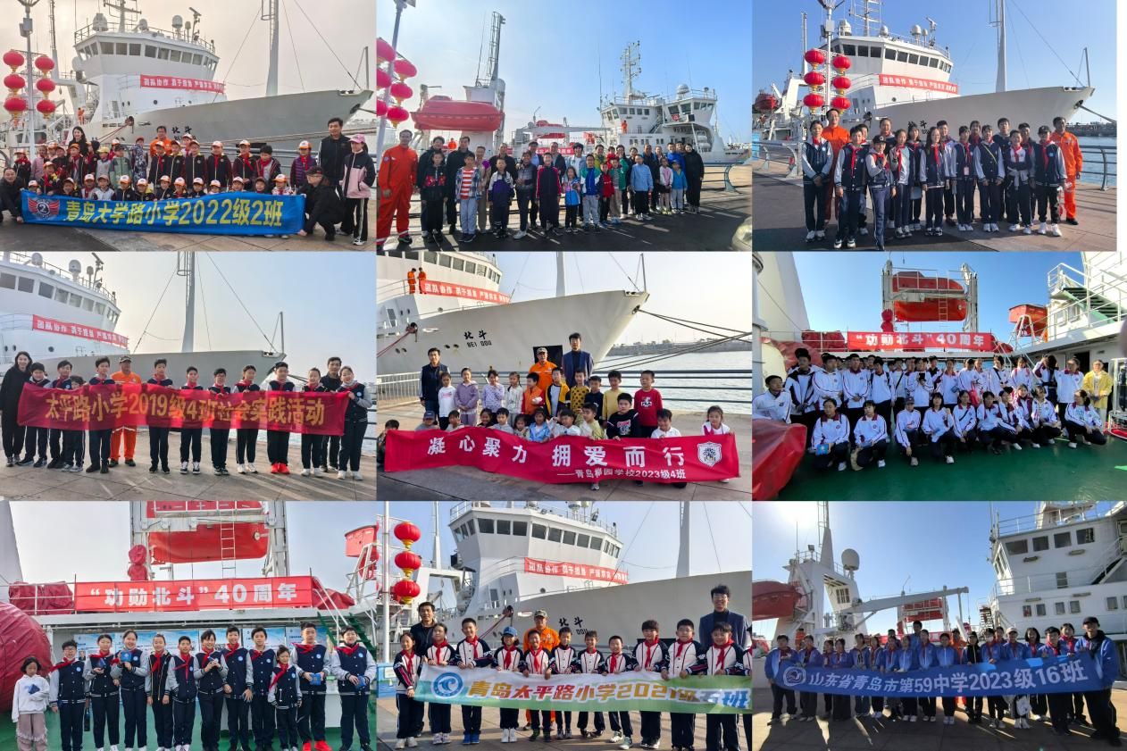 11月2日至3日,中国水产科学研究院黄海水产研究所在青岛奥林匹克帆船中心码头举办“‘功勋北斗’40周年”海洋科普研学活动。来自青岛大学路小学、青岛太平路小学、青岛榉园学校、青岛五十八中、青岛五十九中等学校的学生及家长400余人到黄海所“北斗”号调查船参观学习。