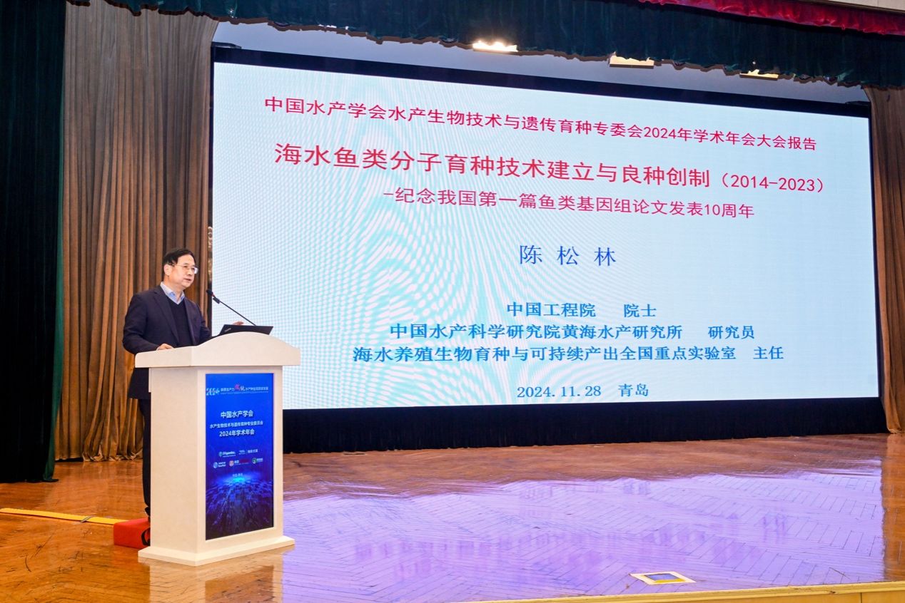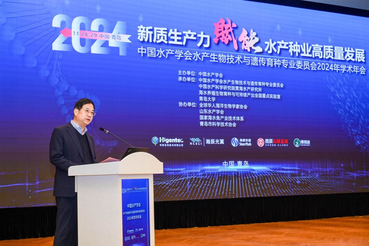 11月28日至29日,中国水产学会水产生物技术与遗传育种专业委员会2024年学术年会在山东省青岛市成功举办?;嵋橛芍泄Щ嶂靼欤泄Щ崴锛际跤胍糯肿ㄒ滴被?、中国水产科学研究院黄海水产研究所、海水养殖生物育种与可持续产出全国重点实验室、青岛大学共同承办。本次年会以“新质生产力赋能水产种业高质量发展”为主题,包括“水产养殖生物种质资源收集、评价与保存”“水产养殖生物基因资源发掘与重要性状遗传解析”“水产生物育种技术创新与应用”“水产生物良种培育与种业发展”等议题。来自全国80多个科研院校和企业的500余名专家学者参加了会议。