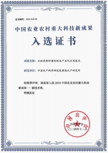入选中国水产科学研究院科研重大进展3项