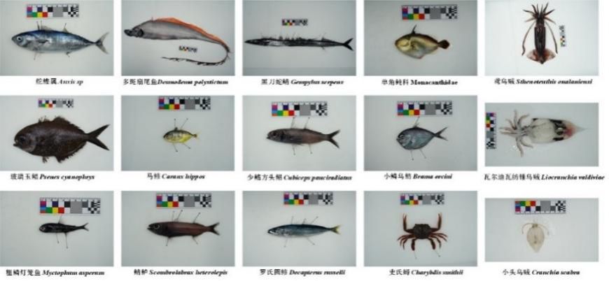 本次调查包括中上层拖网、延绳钓、鱿鱼钓等多种作业方式,采集到100余种渔业生物,主要包括鸢乌贼、少鳍方头鲳、灯笼鱼、大目金枪鱼、黄鳍金枪鱼、剑鱼、帆蜥鱼和紫魟等。灯笼鱼科、圆鲳科、柔鱼科、鲹科、鲭科和蛇鲭科是主要中层及中上层鱼类资源,其中柔鱼科资源占绝对优势;灯笼鱼科资源主要分布在马尔代夫西部公海海域,而其他鱼类资源在索马里东南部公海存在高密度分布区。此次调查采集了2000米深水水样,获取了鱼卵、仔稚鱼、浮游生物、环境DNA、微塑料和常规水文样品等1万余份,保存了珍贵渔业生物标本300余份,以及水文、气象、声学数据等超过2TB,系统分析了中西印度洋渔场的生态学基础。