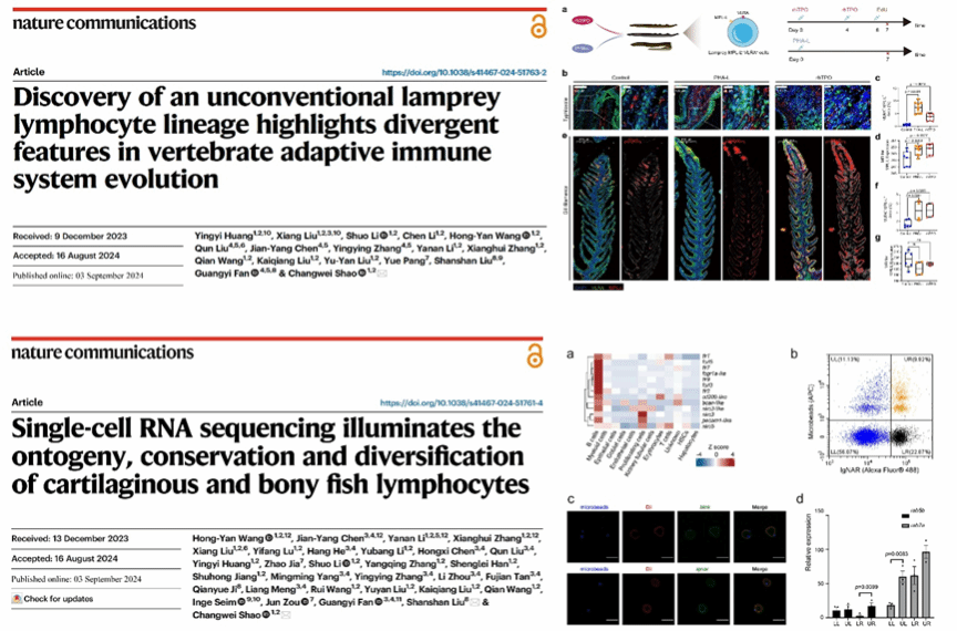适应性免疫系统是脊椎动物独有的免疫防御屏障?;坪KQ笥嬉瞪镆糯试雌兰塾牒铣衫么葱峦哦釉诩棺刀锸视π悦庖呦低车难莼芯恐腥〉弥匾黄疲芯砍晒粤狡芯柯畚男问皆诠手诳蹲匀弧ねㄑ?a>》(Nature Communications)背靠背发表。
